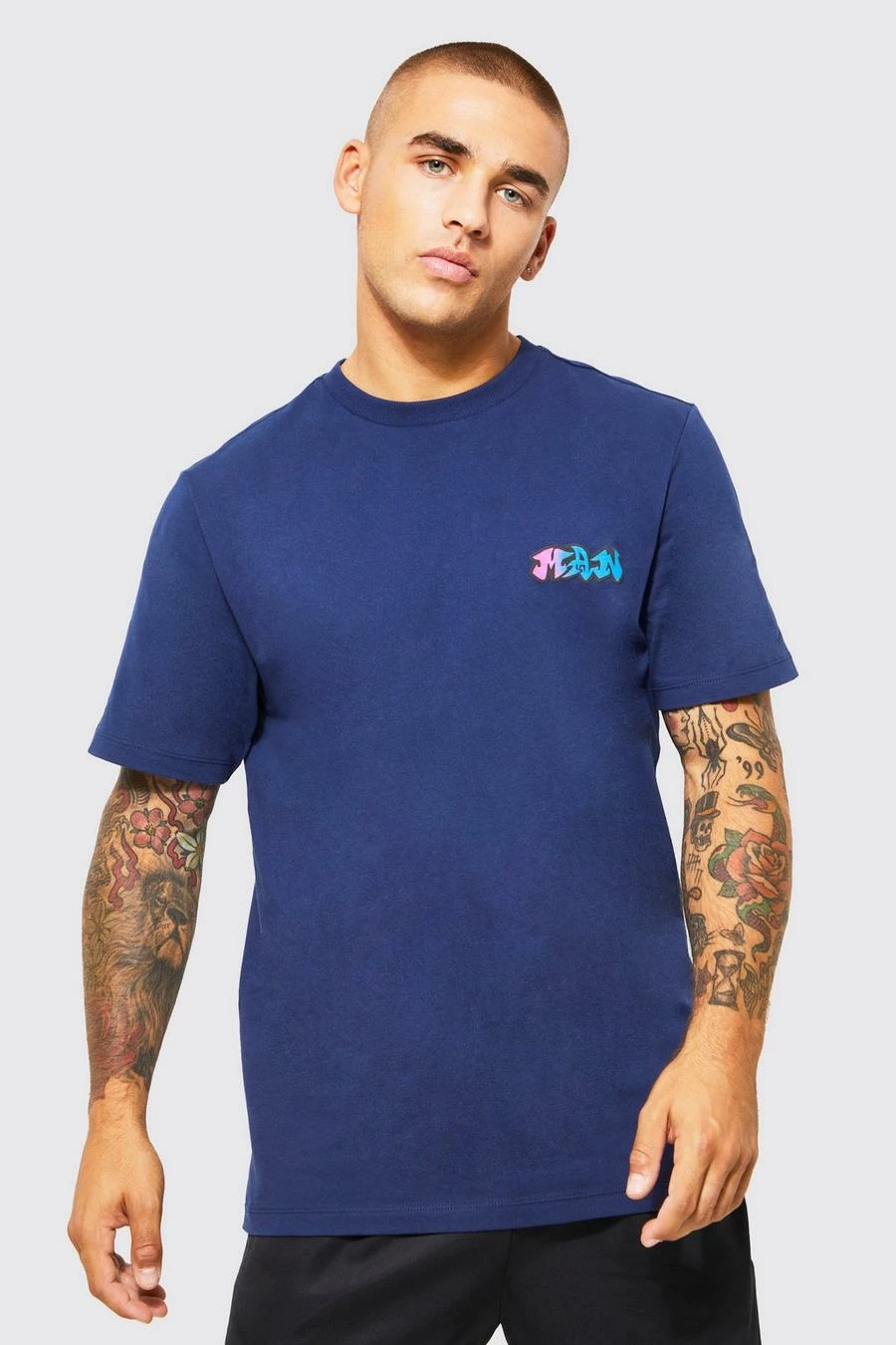 Budget ๐Ÿ˜ Man Gradient Patch Graphic T ๐Ÿ‘š Shirt Navy โœ”๏ธ