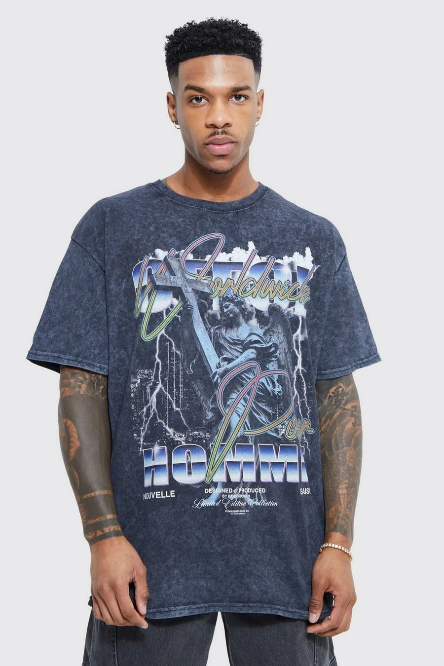 Wholesale βœ”οΈ Oversized Acid Wash Statue Graphic T-shirt Black πŸ›’