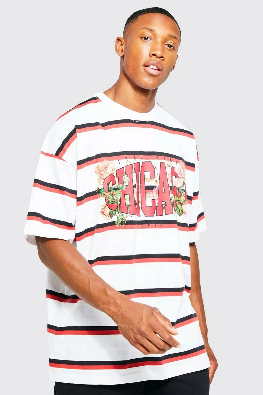 Flash Sale โœจ Oversized Chicago Floral Stripe T-shirt White ๐Ÿ”ฅ