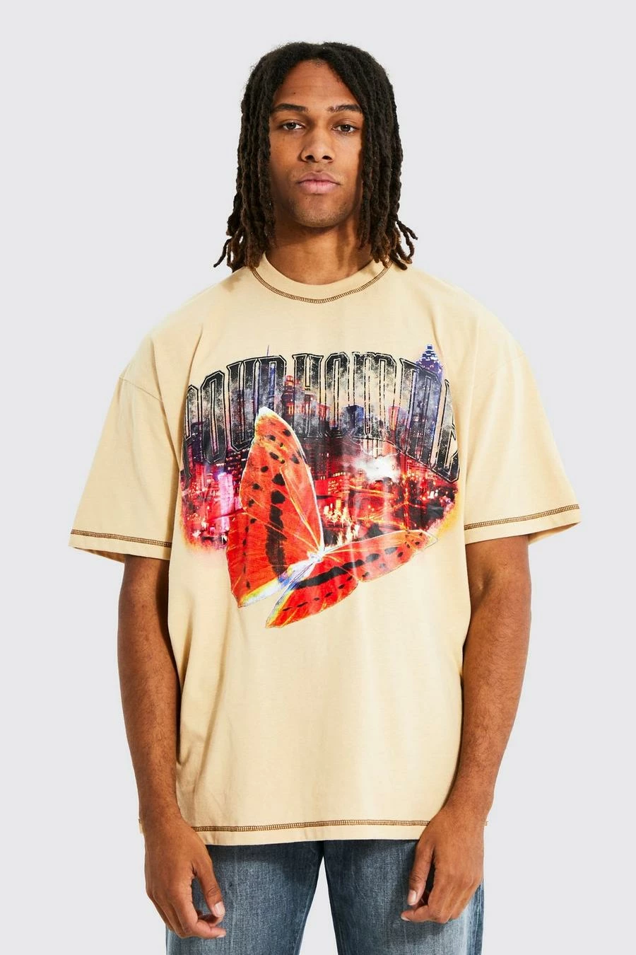 Best Pirce ๐Ÿงจ Oversized Contrast Stitch Graphic T-shirt Sand ๐Ÿงจ