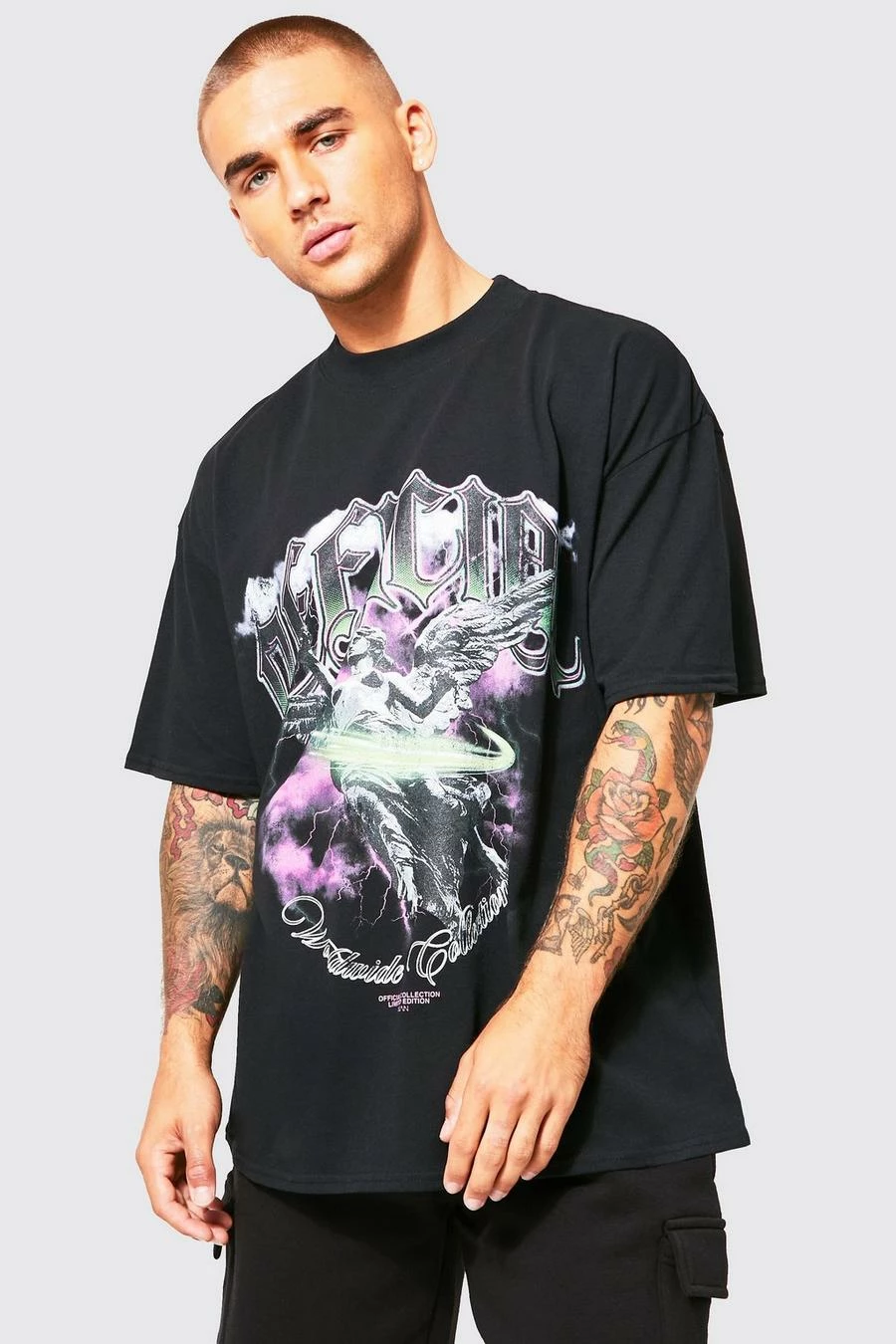Buy 💯 Oversized Extended Neck Graphic T-shirt Black 🛒