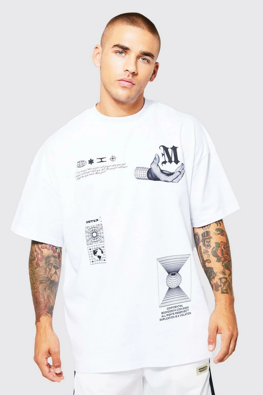 Deals ๐Ÿ‘ Oversized Extended Neck Multi Graphic T-shirt White โœจ