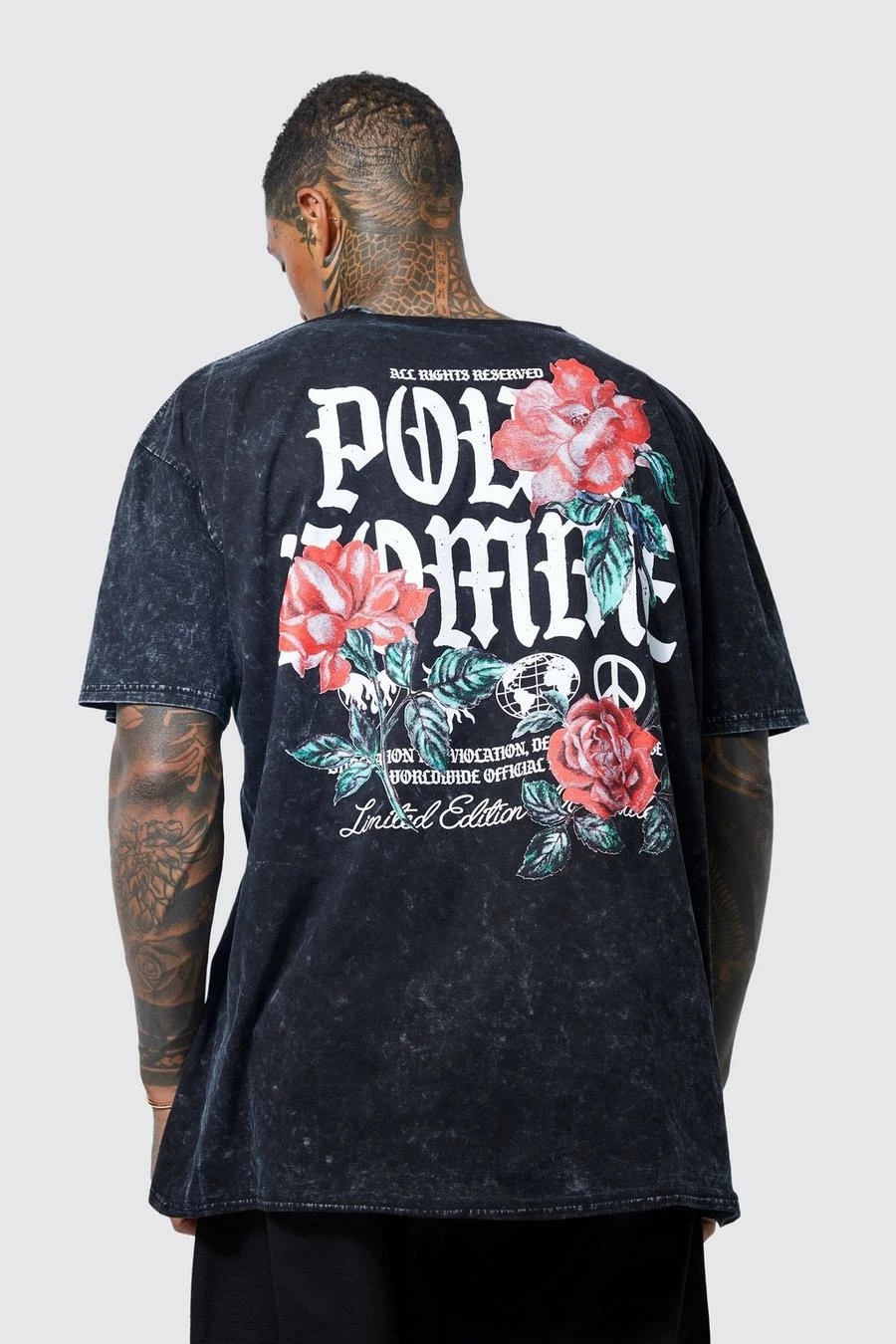 Hot Sale πŸŽ‰ Oversized Floral Acid Wash Graphic T-shirt Black πŸ””
