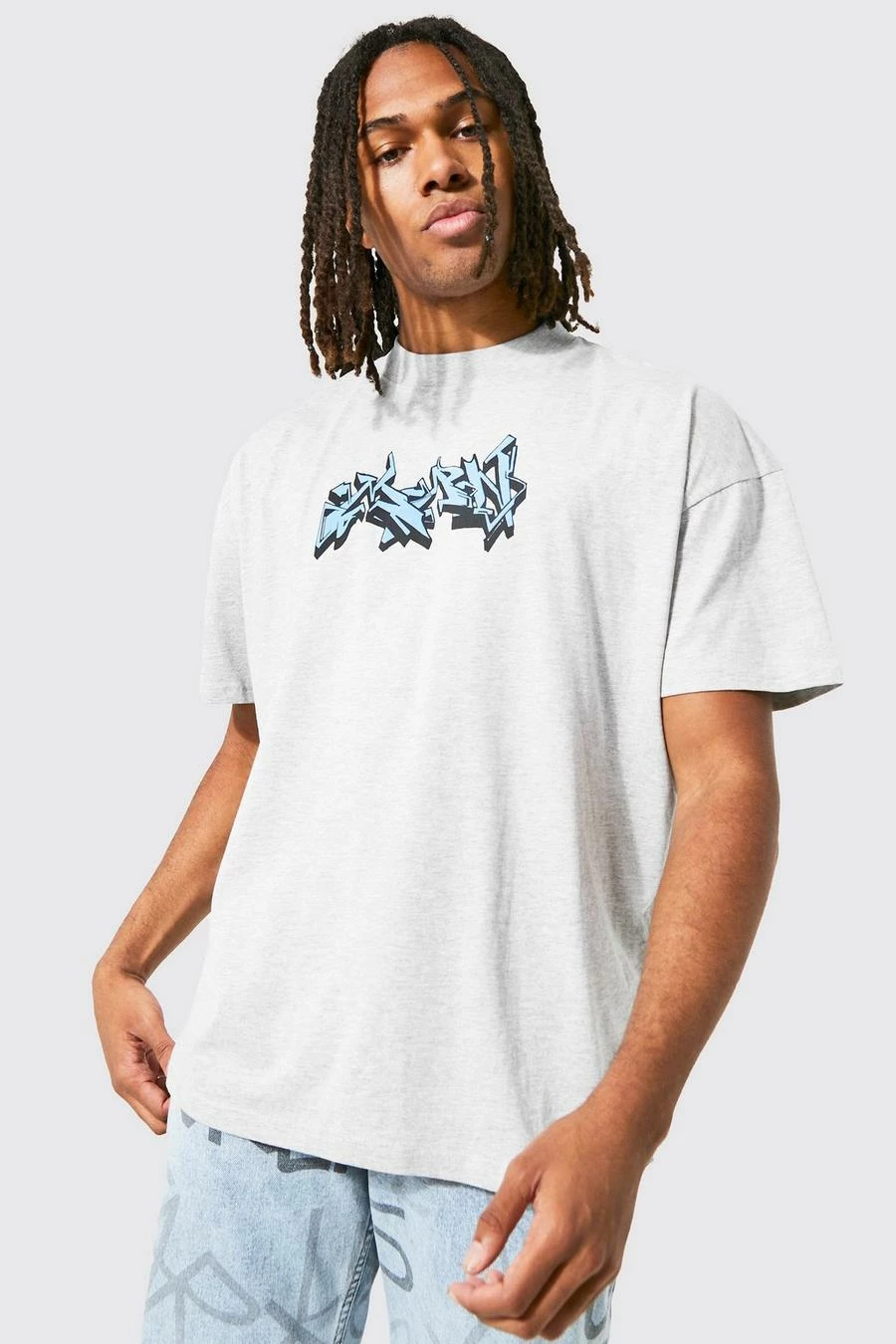Buy ✨ Oversized Front Text T-shirt Grey 😀