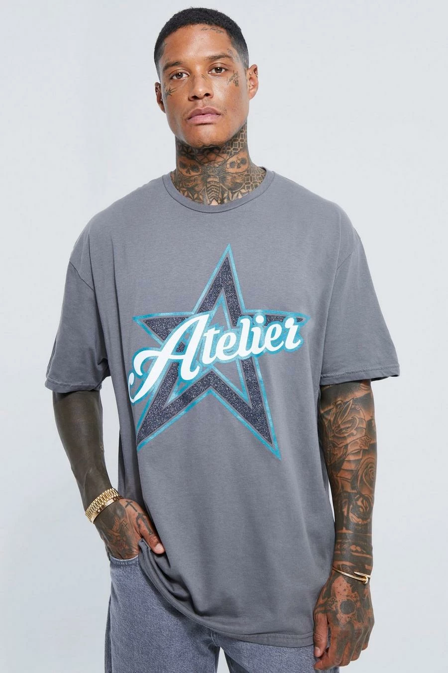 Top 10 🀩 Oversized Glitter Varsity Graphic T-shirt Charcoal ❀️