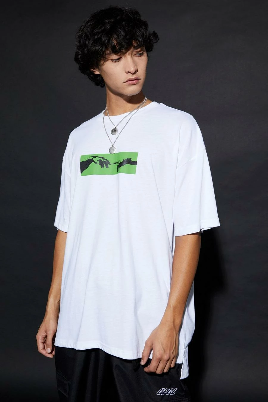 Best Pirce โค๏ธ Oversized Graphic Step Hem T-shirt White ๐Ÿ›’