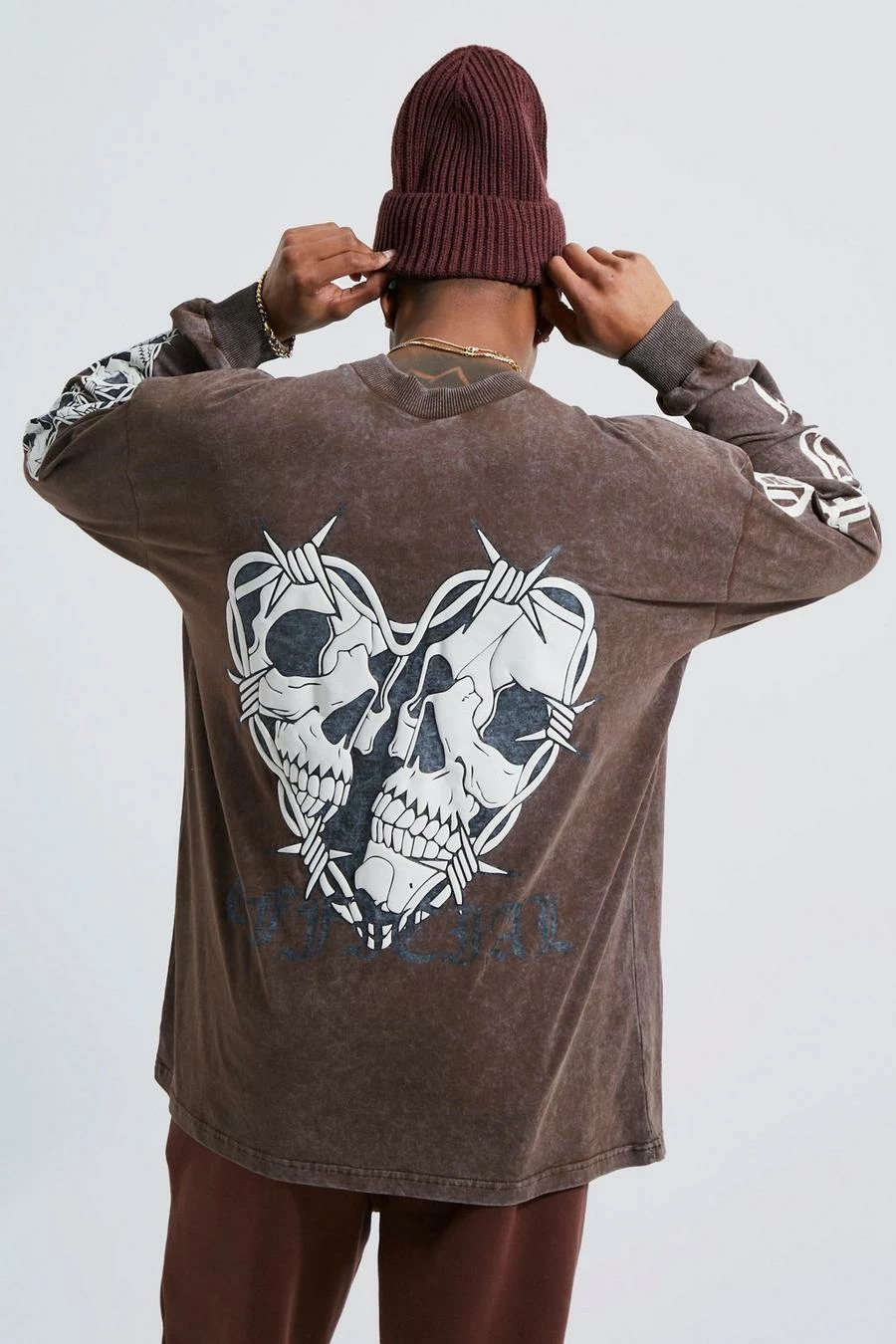 Best deal πŸ₯° Oversized Long Sleeve Washed Graphic T-shirt Chocolate πŸ˜€