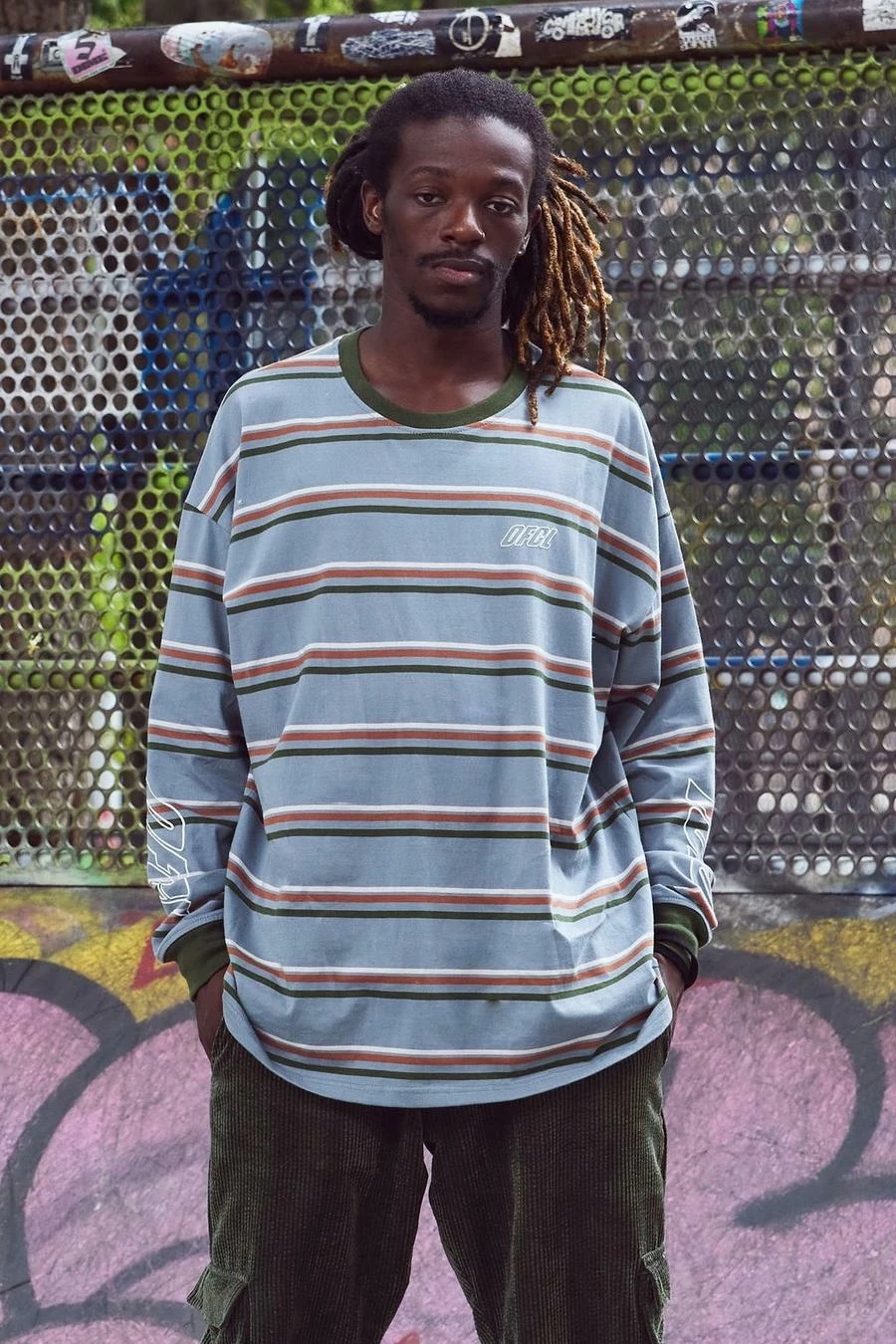 Outlet ⌛ Oversized Ofcl Stripe Long Sleeve T-shirt Blue 💯