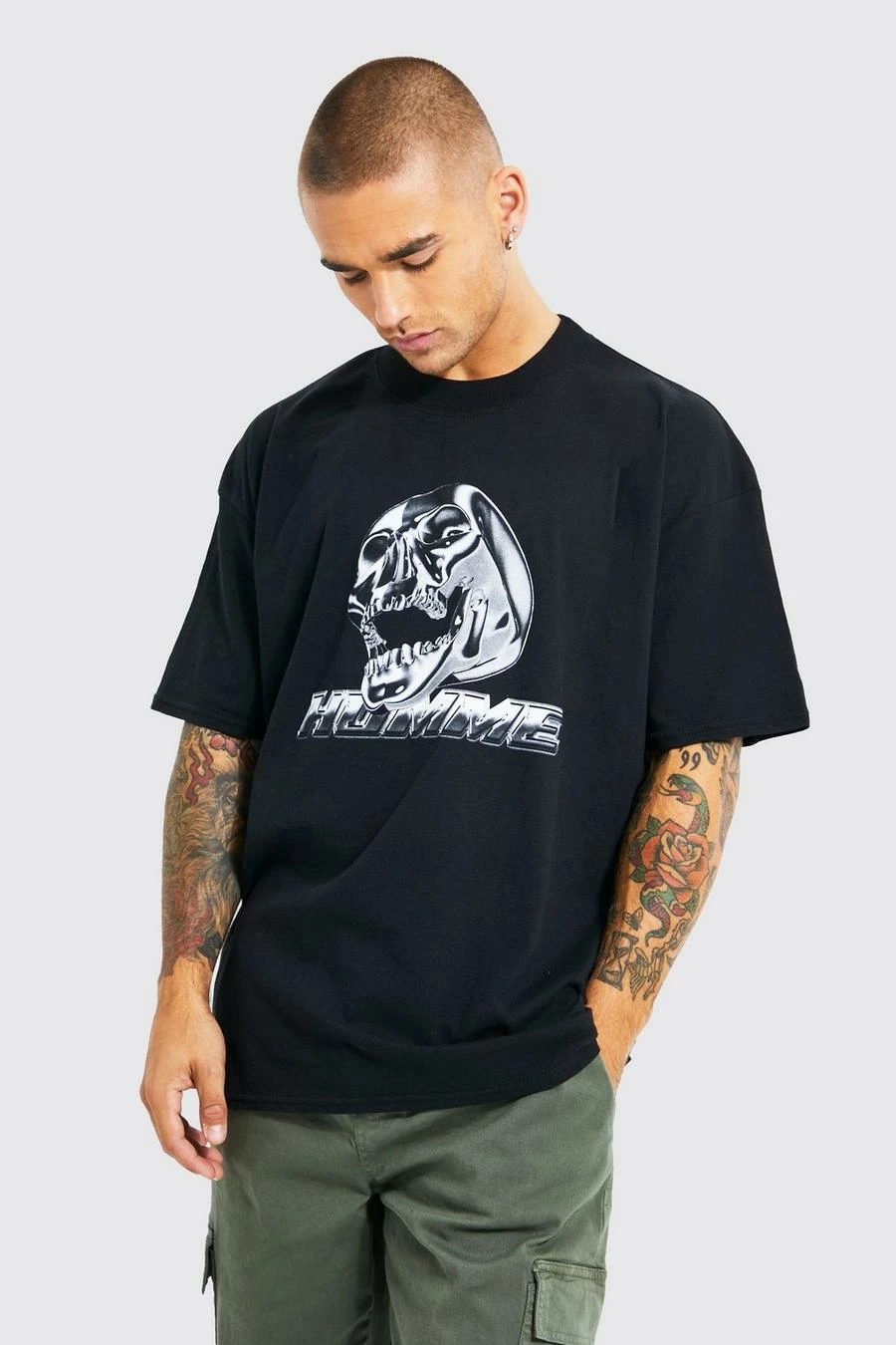 Promo ๐Ÿ˜ Oversized Skull Homme Print T-shirt Black โŒ›