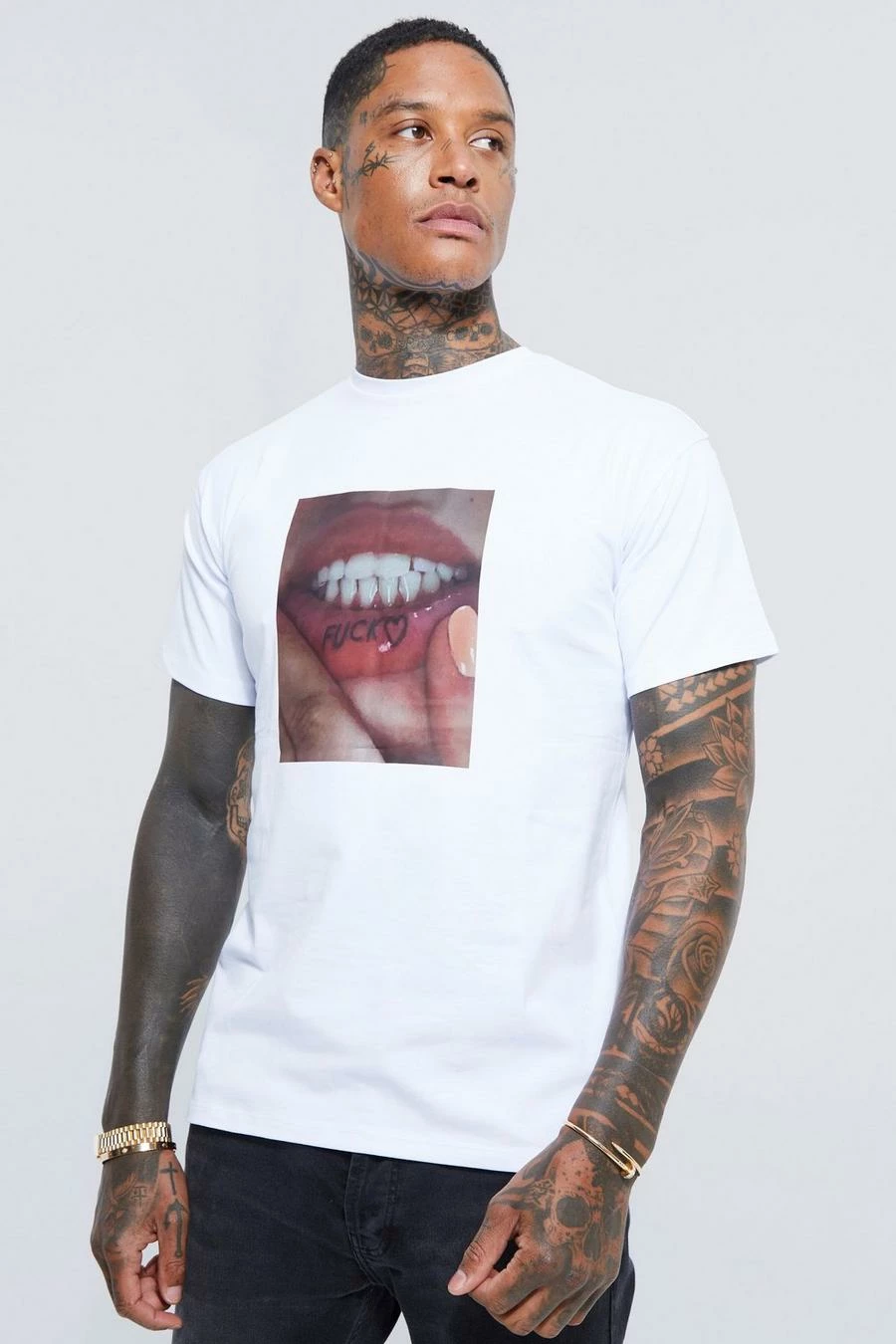 Discount ⭐ Slim Fit Graphic T-shirt White 🀩
